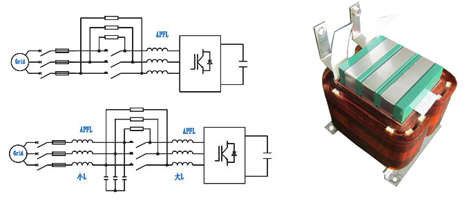 连接有源滤波器与电网,抑制APF开关频率纹波电流所衍生的高次谐波电流,抑制电流峰值。